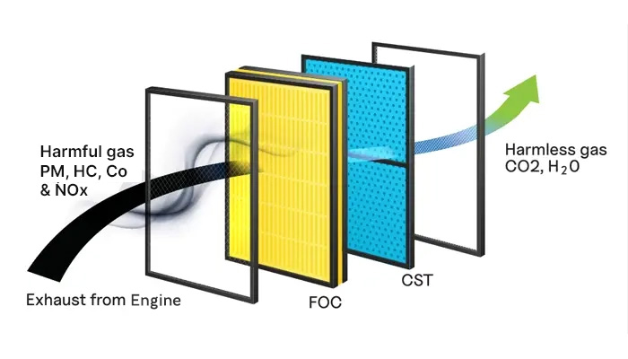 Our RECD employs advanced technology, incorporating the Fuel Oxidation Catalyst (FOC) and Catalytic Soot Trap (CST). Designed to match the size of the silencer, this compact system efficiently diminishes particulate matter such as carbon soot, and harmful gases like hydrocarbons (HC) and carbon monoxide (CO), and Nitrogen Oxides (NOx), promoting cleaner emissions. This environmentally conscious approach significantly contributes to protecting our surroundings.